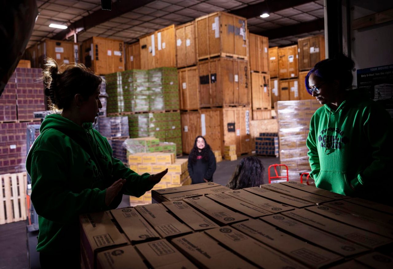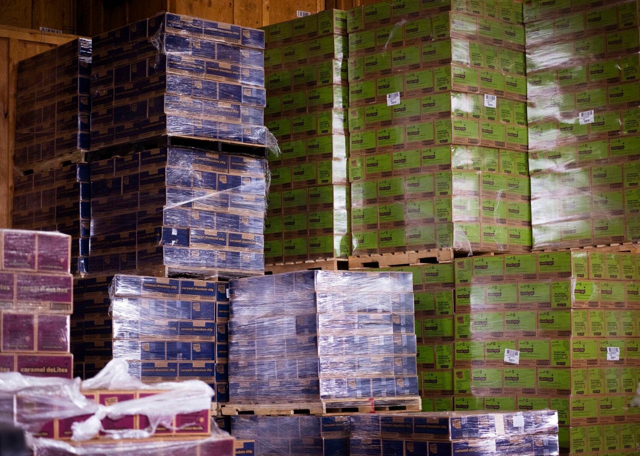 Thousands of cases of Girl Scout cookies wait for pick-up at Buehler Moving of Albuquerque’s warehouse in SE Albuquerque, N.M., on Thursday, Feb. 8, 2024. Troop leaders, parents and volunteers lined up their vehicles and trailers as Buehler Moving employees packed them full of Girl Scout cookies for the annual cookie sales. A total of 351,804 packages of cookies are being distributed this week to Girl Scout Troops across two-thirds of the state.